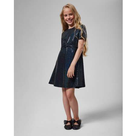 Мерцающее праздничное платье для девочки Orsolini с эффектом хамелеон и декоративным узлом на талии.