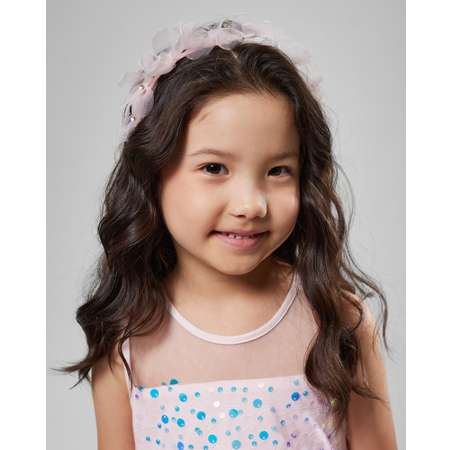 Ободок Orsolini в нежно-розовом цвете, с объёмным цветочным декором, украшенным стразами.