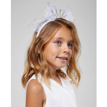 Ободок Orsolini в белом цвете, с объёмным бантиком и диадемой из страз.