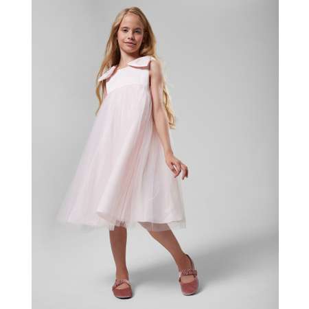 Праздничное платье для девочки Orsolini в нежно-розовом цвете с пышной юбкой. Декорировано бантиками на плечиках.