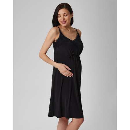 Ночная сорочка для беременных и кормящих Futurino Mama чёрного цвета с кружевом.