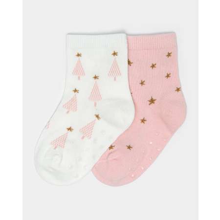 В комплекте Baby Gо две пары новогодних носков для девочки, декорированные принтом с люрексом - молочного цвета и розового.