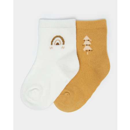 В комплекте Futurino две пары новогодних носков для девочки, декорированные принтом с люрексом - молочного цвета и бежевого.