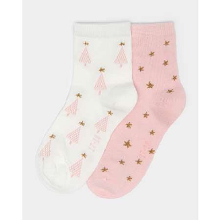 В комплекте Futurino две пары новогодних носков для девочки, декорированные принтом с люрексом - молочного цвета и розового.