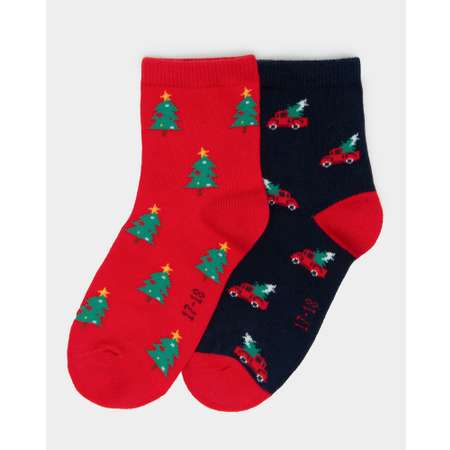 В комплекте Futurino две пары новогодних носков для мальчика с цветным принтом - красные и тёмно-синие.