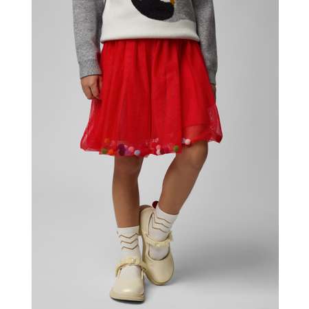 Пышная новогодняя юбка Futurino красного цвета, с отделкой из фатина с цветными шариками (помпонами) внутри.