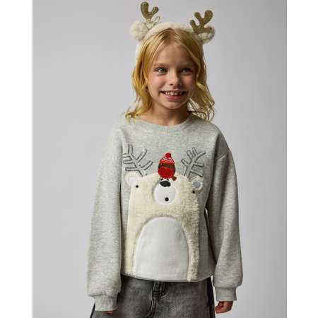 Новогодний свитшот для девочки Futurino, украшенный объёмным декором с пайетками.