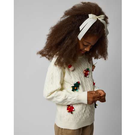 Новогодний джемпер для девочки Futurino с объёмным цветным декором.