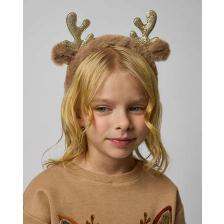 Пушистый новогодний ободок Futurino с рожками. Можно использовать как самостоятельный аксессуар или как дополнение к костюму Оленя.