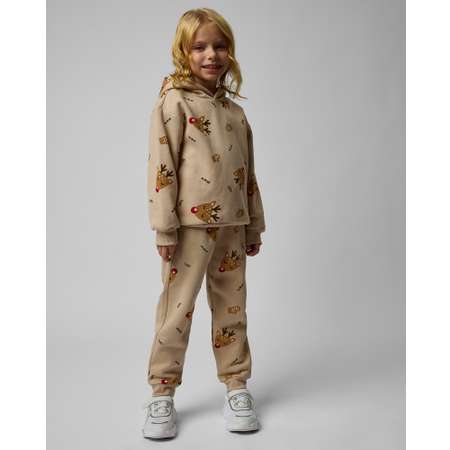 Новогоднее худи для девочки Futurino, декорированное принтом с оленями.