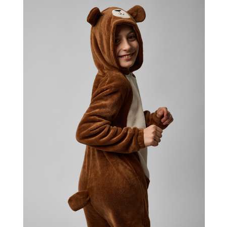 Плюшевый коричневый кигуруми Grimmo Медвежонок с объёмными элементами.