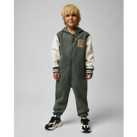 Комбинезон для мальчика Futurino тёмно-зелёного цвета с контрастными рукавами и объёмной вышивкой.