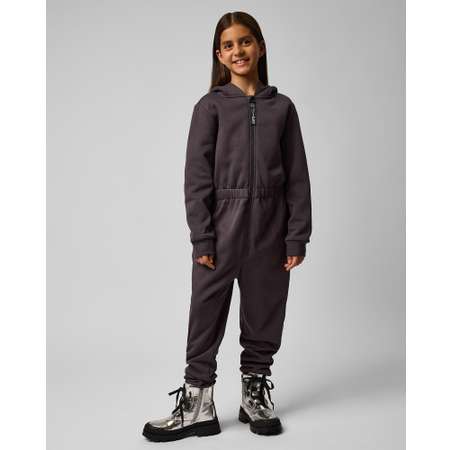Однотонный комбинезон для девочки Futurino тёмно-серого цвета, с ушками на капюшоне