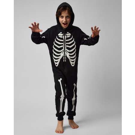 Комбинезон для мальчика Futurino чёрного цвета с принтом "скелет". В стиле Хэллоуин.
