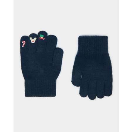 Синие перчатки для мальчика Futurino с цветным новогодним принтом.