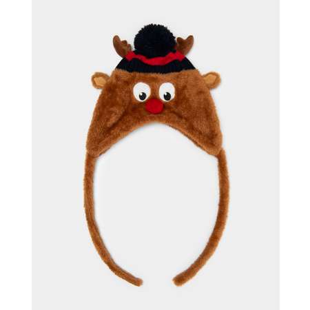 Мягкая новогодняя шапка Futurino с объёмным декором в виде Оленя. На завязках.