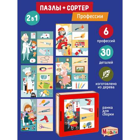 Деревянная рамка вкладыш Mapacha развивающая игрушка монтессори мелкая моторика Професии