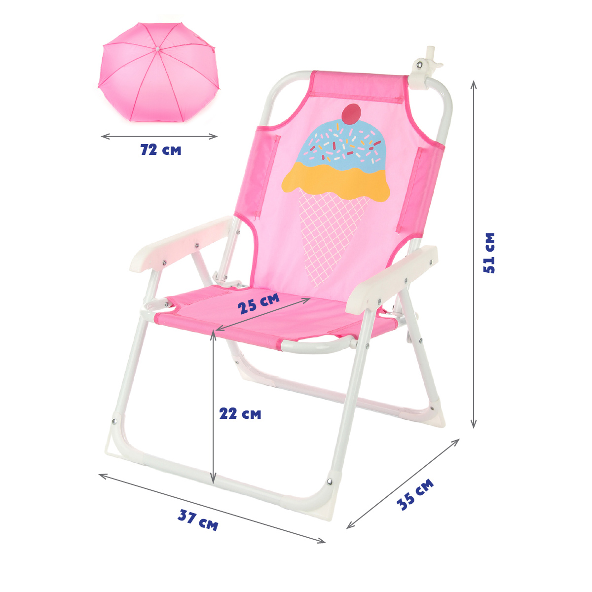 - Зонт сломался через неделю, особо и не использовали, при открывания оторвался от основания, ремонту не подлежит. Стул нормальный, помещается в чемодан), удобно брать с собой