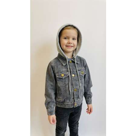 Джинсовая детская куртка, с капюшоном. Модная джинсовая куртка со стильным принтом и нагрудными карманами, идеальный вариант для прогулки по городу в прохладную летнюю погоду. Джинсовая куртка свободного кроя с классическим отложным воротником, съемным капюшоном, металлическими пуговицами. Стильная джинсовая куртка легко комбинируется с любым образом, можно накинуть на плечи в теплую погоду, или застегнуть пуговицы и надеть капюшон в прохладную погоду.