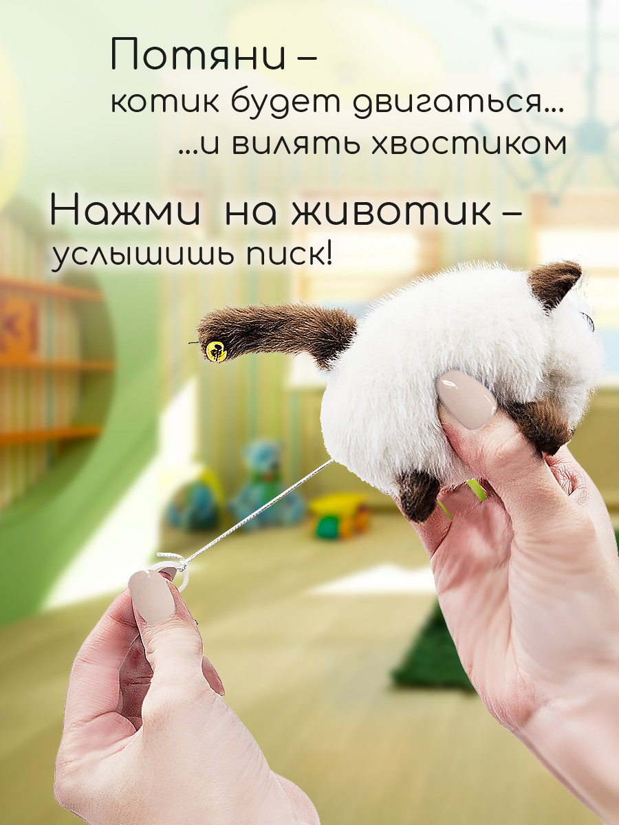 Мягкий брелок Territory Белый котик пищит и виляет хвостиком