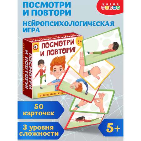 Посмотри и повтори – это весёлая игра для компании, которая скрасит детский досуг и поднимет настроение, а также поможет провести время с пользой. Будет незаменима на детских праздниках, для воспитателей в детском саду и в кабинете психолога.