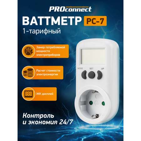 Цена на Ваттметр PROconnect вертикальный 1-тарифный 16А - 1461 ₽.