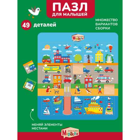 Пазл квадратный Mapacha Город деревянный 49 деталей подложка-основание