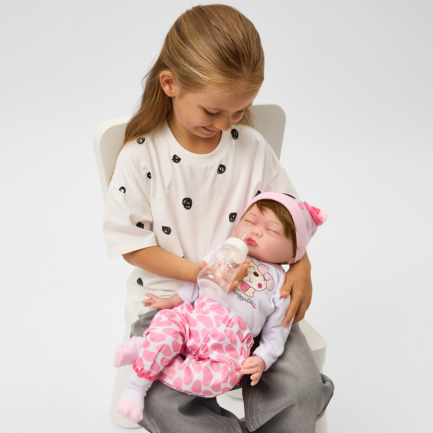 Пупс Реборн YoFun Младенец высотой 55 см — это игрушка с детально проработанным выражением лица, напоминающая настоящего ребенка. Тело у пупса мягкое, поэтому его можно укладывать и присаживать.