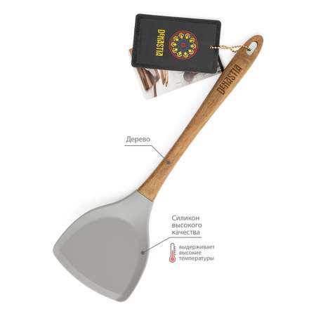 Лопатка кулинарная DeNASTIA силикон с ручкой из акации 35x10 см серый A000165