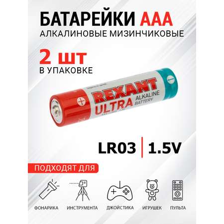Батарейка REXANT Ультра алкалиновая AAA LR03 1.5В 2 штуки