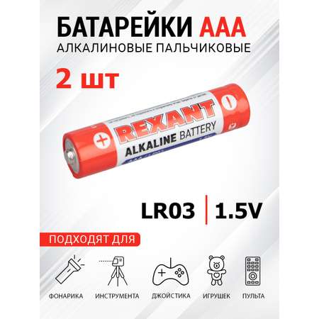 Батарейка REXANT алкалиновая AAA LR03 1.5В 2 штуки