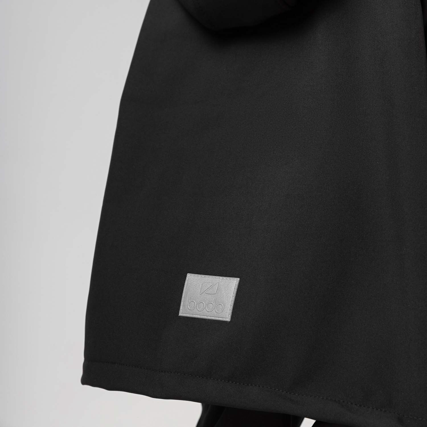 На куртке накладные карманы, на молнии светоотражающий пуллер, защитная планка, несъемный капюшон.