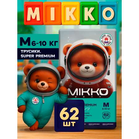 Подгузники-трусики Mikko Bear Super Premium M 6-10 кг 62 шт