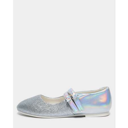 Блестящие праздничные туфли для девочки Futurino в стиле мери-джейн. Выполнены в серебристом цвете с голографическим эффектом.