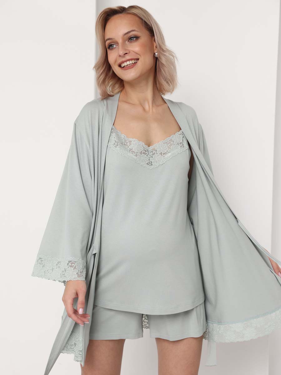 Hunny mammy - качественная одежда и белье для беременных и кормящих. Домашний костюм для беременных. Костюм состоит из мягких шорт, топа и халата, выполненных из качественной мягкой вискозы. Это удобная и практичная домашняя одежда для беременных, которая поможет сделать беременность более комфортной. Благодаря свободному крою костюм не сковывает движения, его можно носить на любом сроке беременности, есть секрет для кормления, который позволяет кормить малыша. Комплект максимально удобный и приятный к телу благодаря мягкой ткани. Домашний удобный женский костюм станет отличной одеждой для сна и отдыха.