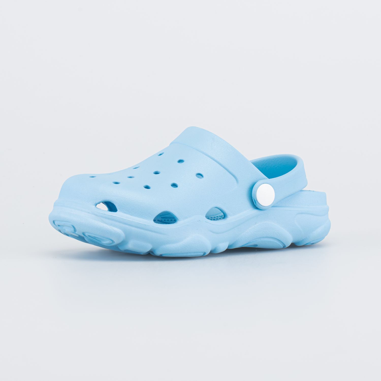 Детские голубые сабо отлично дополнят пляжный образ девочки дошкольного возраста. Обувь полностью выполнена из материала ЭВА (этиленвинилацетата) - очень лёгкого, гибкого, эластичного и амортизирующего. Он быстро сохнет и его легко мыть. Закрытый носок защищает пальцы от горячего песка и камней, при этом перфорация позволяет стопе дышать. Перекидной ремешок надежно фиксирует обувь на ноге. Внутренняя анатомическая форма модели повторяет форму стопы. Сделано в России. * Сабо можно украсить стильными декоративными элементами - котофишками. Посмотреть коллекцию можно здесь