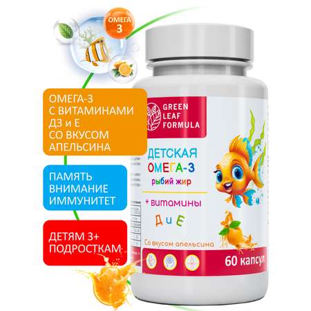 Детская омега-3 - это комплекс витаминов для детей от 3 лет и подростков, витамины для школьников, для растущего организма ребенка на основе Омега 3 рыбий жир, обогащенный витамином Д3 и витамином Е.