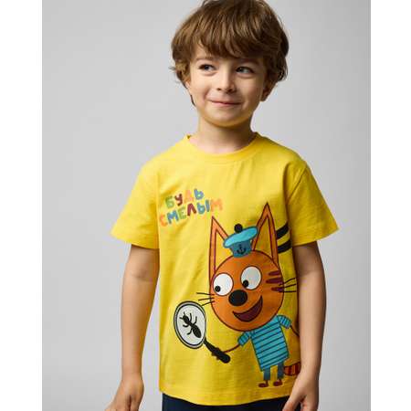 Оранжевая футболка для мальчика Три Кота, декорированная красочным принтом с Коржиком.