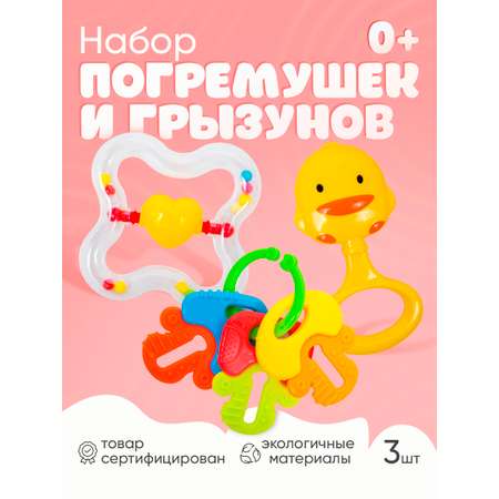 Набор погремушек придется по душе всем малышам! Красочные игрушки научат ребенка фокусировать внимание на ярких цветах и помогут развить моторику, слух, тактильное восприятие. Изготовлено из безопасной, высококачественной пластмассы. В пакете 3 шт.
