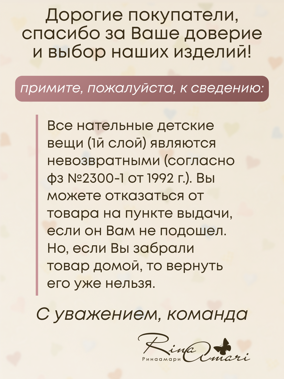 Придерживайтесь, пожалуйста, рекомендаций по уходу, и изделие прослужит вам очень долго и доставит только положительные эмоции Вам и Вашему малышу.
