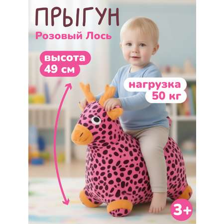Развивающий джампер с насосом в комплекте предназначен для мальчиков и девочек от 2 – 3 лет. Такой детский тренажер поможет малышу тратить энергию и проводить время весело и с пользой. Попрыгун в виде лося не менее полезен, чем мяч или лошадка: он не только развлекает, но и тренирует баланс, ловкость, выносливость. Тренажер выполнен из прочного материала и выдерживает нагрузку до 50 кг. Текстильная часть игрушки (чехол) снимается, ее можно стирать.