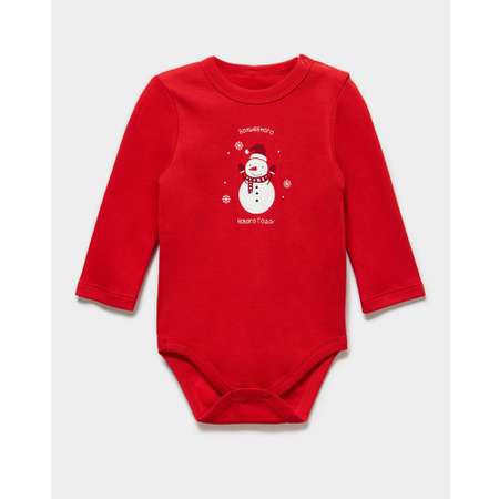 Красное новогоднее боди для мальчика Моя Горошинка с цветным принтом "Волшебного Нового года!".
