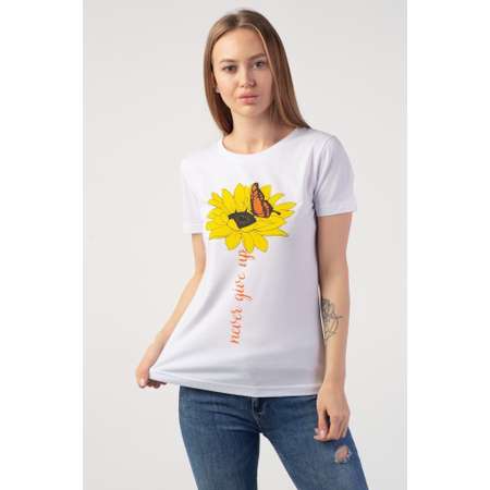 Футболка классического фасона, прямого кроя, с коротким рукавом и округлым вырезом. Декорирована принтом. Универсальная модель футболки отлично подойдет для любого образа и станет необходимой вещью в вашем гардеробе. Стильная женская футболка с принтом отличный подарок на День рождения. Посадка свободная, футболку будет удобно носить навыпуск или заправлять Футболка выполнена из мягкого хлопкового полотна средней плотности приятного к телу. Ориентируйтесь при выборе на российские размеры, но, если предпочитаете более свободный крой, закажите на размер больше. Сделано в России.