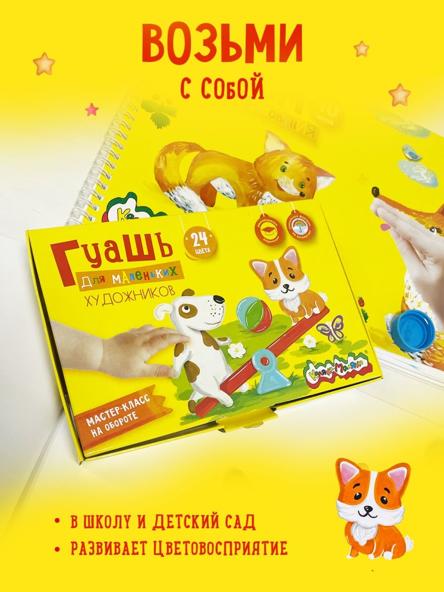 Гуашь Каляка-Маляка ДЛЯ САМЫХ МАЛЕНЬКИХ ХУДОЖНИКОВ 10 мл 24 цвета ассорти набор баночек