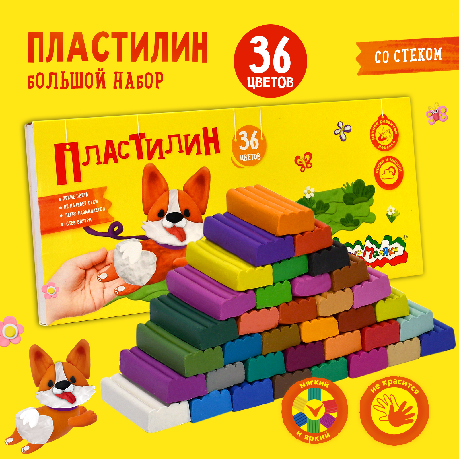 Пластилин набор 36 цветов со стеком детский Каляка-Маляка — это формула классического пластилина высокого качества. Маленькие любители творчества без труда смогут смять брусок и придать ему нужную форму. Имеет яркие сочные цвета, мягко растягивается и прекрасно держит форму. При этом не окрашивает руки, не прилипает и не оставляет масляных пятен. Изготавливается на современном российском производстве, соответствует всем стандартам безопасности детской продукции.• Пластилин может применяться для творчества детей, начиная от трех лет.• Развивает мелкую моторику рук и творческое мышление у детей.• Прекрасно подходит как для создания фигур, так и для рисования пластилином.• Рекомендуется как для домашних поделок, так и для уроков труда в школе и занятий творчеством в детском саду.