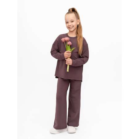 Практичный трикотажный костюм для девочки состоит из лонгслива и брюк, незаменимая вещь в детском и школьном гардеробе. Этот детский спортивный брючный костюм выполнен из хлопкового полотна (футер 2-х нитка). Не деформируется и не скатывается даже при повседневной носке и многочисленных стирках. Кофта с длинными рукавами на манжетах имеет свободный оверсайз крой. Штаны палаццо на широкой эластичной резинке обеспечивают дополнительную поддержку и комфорт. Брючки в этом костюме летнем для девочки имеют среднюю посадку и прямой крой.