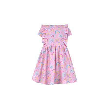 Нарядное летнее платье для девочки от бренда Luneva — идеальный выбор для повседневной носки и особых случаев. Трикотажное платьице изготовлено из 100% хлопка. Это дышащая натуральная ткань, которая подходит даже для самой чувствительной кожи. Полуприлегающий фасон делает модель удобной в носке и не сковывает движения. Юбка-солнце создает воздушный, легкий силуэт, придавая образу нежность и праздничное настроение. Удобная универсальная длина до колена подходит для девочек любого роста. Короткие рукава обеспечивают свободу движений, а окантовка рюшами придает образу изысканность. Застежка на пуговицы сзади позволяет легко надевать и снимать платьице. Платьишко представлено в большом размерном ряде и хорошо смотрится как на высоких, так и на низких девочках любой комплекции. Милый принт отлично подходит для детского утренника, фотосессии или семейного праздника. Стильное платье станет оригинальным подарком для дочки или внучки на день рождения или любой другой праздник. Для того чтобы изделие радовало Вашего ребенка дольше, мы рекомендуем деликатную стирку при t не более 30С с использованием смягчающих средств. Наша продукция разработана и сшита на собственном производстве в России, что гарантирует контроль качества на всех этапах. Сделано с любовью для ваших детей. Носите с удовольствием, будем рады вашим отзывам.