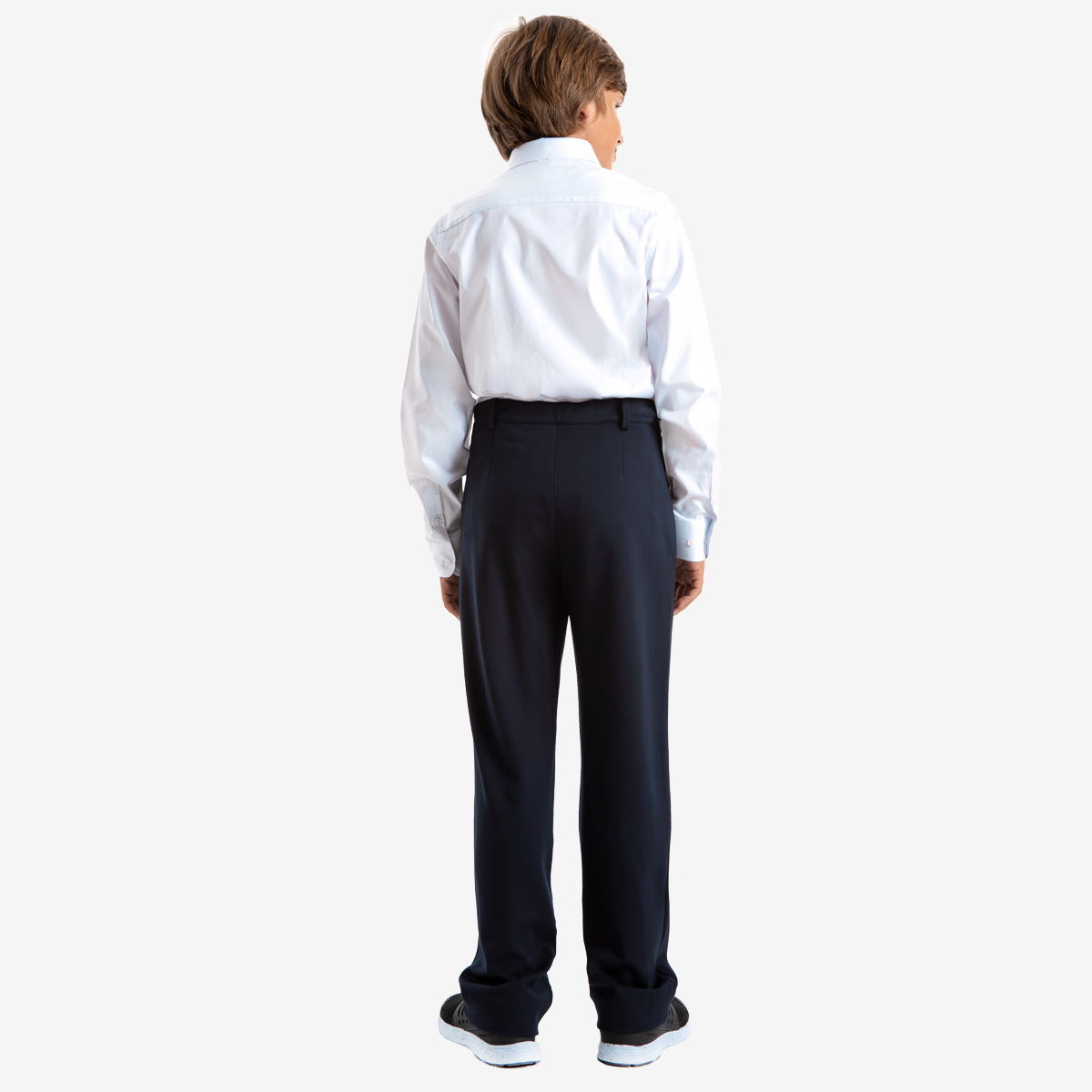 Школьные трикотажные брюки (увеличенной полноты) для мальчиков подростков в универсальном темно-синем цвете подойдут не только для формальных мероприятий, но и для ежедневной носки. Выполненные из поливискозы брюки классического покроя позволят свободно двигаться и выглядеть стильно. Пояс имеет возможность регулировки по ширине за счет, вставленной внутрь резинки с перфорационными отверстиями. Добавляют удобства средняя посадка, застёжка на молнию и пуговицу, шлёвки для ремня и боковые карманы. Собрать классический костюм-тройку помогут стильные жилетка и пиджак из этой же коллекции.Школьные легкие брюки станут незаменимой частью школьного гардероба вашего мальчика. Классический крой брюк делает их универсальным вариантом как для школьных будней, так и для повседневной носки. Они идеально подойдут для подростков, которые следят за своим образом и хотят выглядеть стильно и аккуратно. Свободный крой и средняя посадка обеспечивают свободу движений. Ткань плотная, приятная на ощупь, не требует частой глажки, не вытягивается и сохраняет форму, оставаясь опрятной даже после насыщенного учебного дня. Эти брюки разработаны с учетом потребностей активных детей, обеспечивая максимальный комфорт и свободу движений.Тонкая ткань позволяет коже дышать и в любую погоду. Тёмно-синий цвет брюк и лаконичный классический крой придают образу строгость, собранность и аккуратность — всё, что ценится в школьной форме. Брючки идеально сочетаются с различным верхом - футболки, классические рубашки, свитера, что позволяет создать стильный и опрятный вид для школьных будней. Классические подростковые образы уместны на фотосессии, в школу или на выпускной праздник. С помощью таких брюк каждый мальчик сможет чувствовать себя уверенно, будь то на уроке, на прогулке или в спортивной секции. Для выбора размера ориентируйтесь на нашу размерную сетку. Брюки школьные классические для мальчика Kapika - идеальный выбор для юных джентльменов, которые ценят стиль и комфорт.