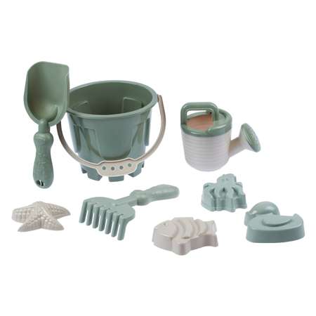 Песочный набор КОМПАНИЯ ДРУЗЕЙ ведро 12 л лопатка грабли 4 формочки лейка бледно-зелёный