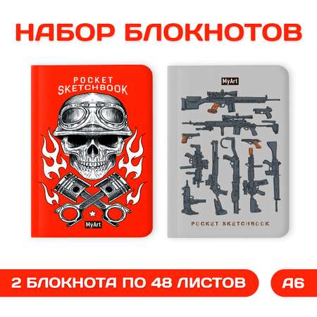 Блокнот Проф-Пресс Pocket скетчбук от MyArt в наборе 2 шт 104х146 мм по 48 листов Оружие+Череп